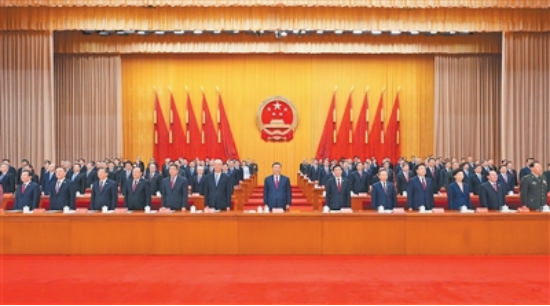 上午10时30分许,在欢快的乐曲声中,习近平等领导同志走上主席台,全场响起长时间的热烈掌声。
