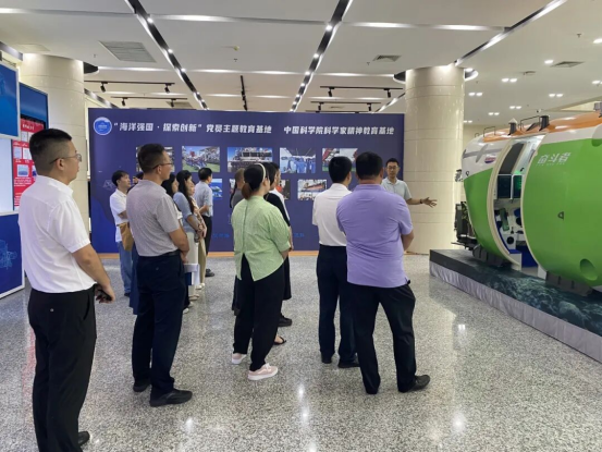活动中,与会人员在深海研究所工作人员的引导讲解下参观党员主题教育基地,观看深海装备模型与样品及深海科考纪录片,近距离接触前沿的深海装备,了解深海科考曲折历程,真切感受蔚蓝深海的无穷魅力和科技创新的强大力量。