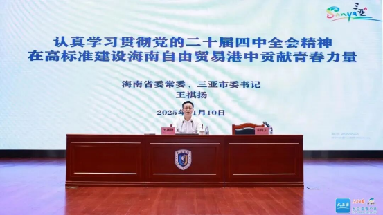11月10日,省委常委、市委书记王祺扬以“认真学习贯彻党的二十届四中全会精神,在高标准建设海南自由贸易港中贡献青春力量”为题,在三亚学院宣讲党的二十届四中全会精神并讲授思政课。