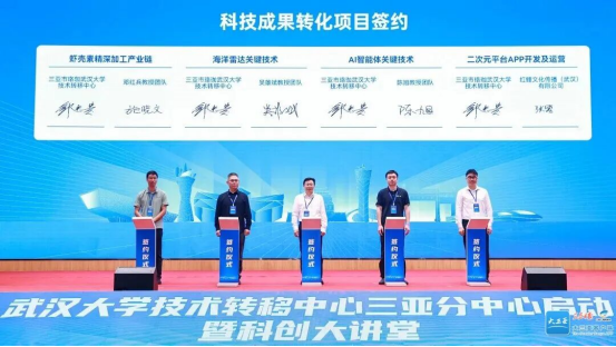 当天,一批科技成果转化项目现场集中签约,涵盖虾壳素精深加工产业链、海洋雷达关键技术、AI智能体关键技术、二次元平台APP开发及运营等多个领域。湖北光谷东控股集团有限公司、三亚市珞珈武汉大学技术转移中心、三亚市投资促进局共同签署了三亚市技术转移创新场景培育基地合作协议;三亚发控私募基金管理公司、三亚市珞珈武汉大学技术转移中心、武汉大学校友企业家联谊总会签署了科创基金合作协议。