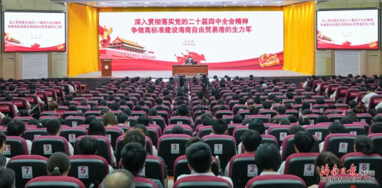 刘小明从“十四五”时期我国发展取得的重大成就,“十五五”时期经济社会发展的重大原则和主要目标、战略任务和重大举措,以及“五年规划”的实践意义等方面阐释全会精神,并介绍海南自由贸易港建设和全岛封关运作、健康海南建设有关情况。他强调,要深入学习领会全会精神,深入贯彻落实习近平总书记在听取海南自由贸易港建设工作汇报时的重要讲话精神,以主人翁姿态投身海南自由贸易港建设,加快建设健康海南,推动卫生健康事业高质量发展,高标准建设海南自由贸易港,打造引领我国新时代对外开放的重要门户。